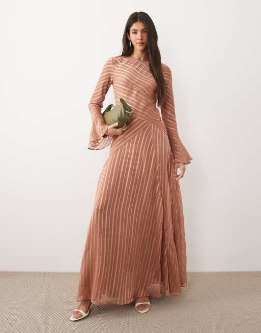 ASOS DESIGN – Roströd, randig maxiklänning med utsvängda ärmar och fåll