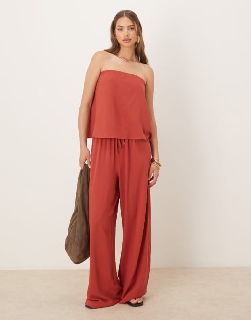 ASOS DESIGN – Roströda byxor i linnemix med resårmidja