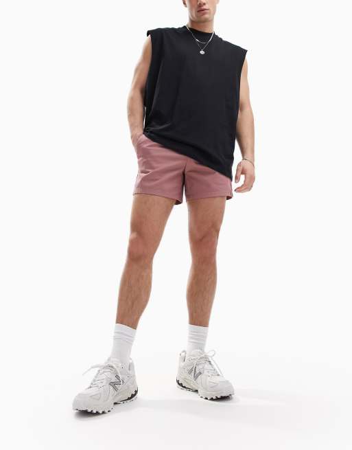 ASOS DESIGN – Roströda, korta chino-shorts med smal passform