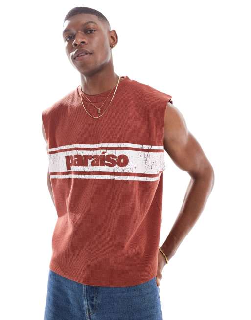 ASOS DESIGN – Rött, våfflat linne i oversize med sportigt tryck