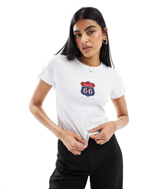 ASOS DESIGN – Route 66 – Elfenbensvit, liten t-shirt med broderi
