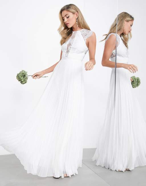 ASOS DESIGN – Ruby – Benvit bröllopsklänning med liv i utsökt spets och plisserad kjol