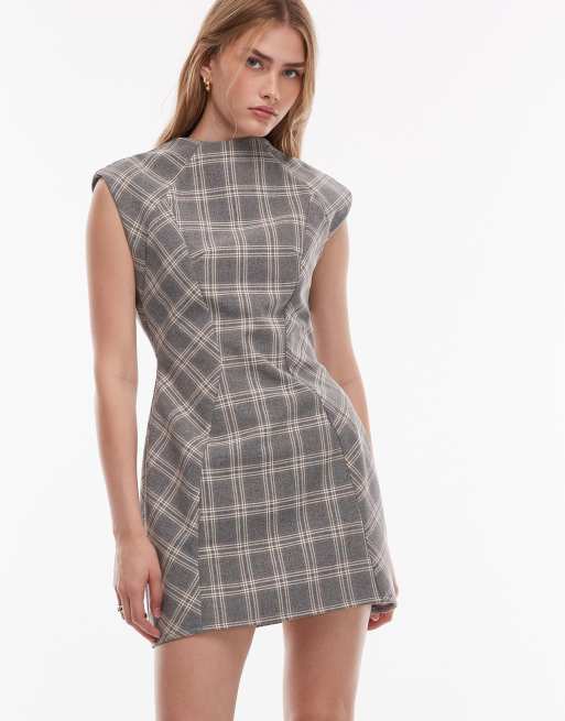 ASOS DESIGN – Rutig, kort skaterklänning med formade holkärmar
