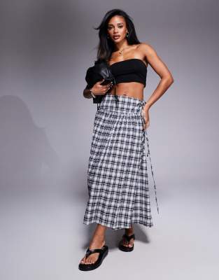ASOS DESIGN – Rutig midikjol i kiltstil med sänkt midja