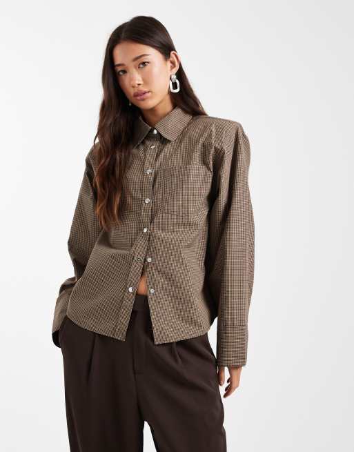 ASOS DESIGN – Rutig skjorta med axelvaddar och boxig passform