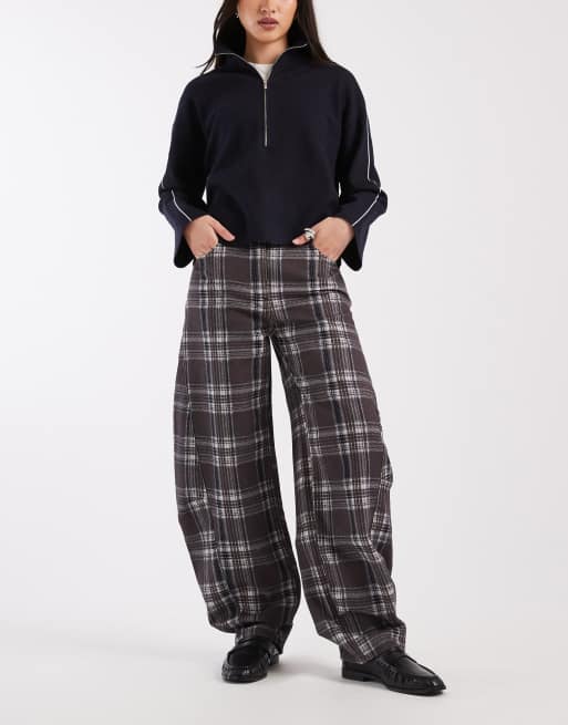 ASOS DESIGN – Rutiga barreljeans med medelhög midja