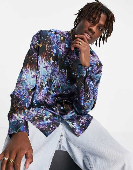 ASOS DESIGN – Rymdmönstrad satinskjorta i oversize och 90-talsstil