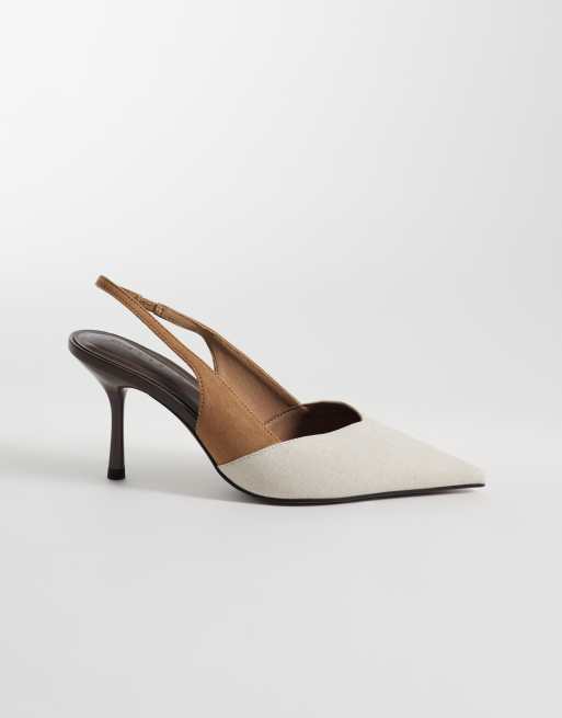 ASOS DESIGN – Sabrina – Beige skor med stilettklackar och hälrem