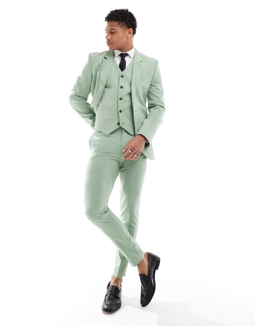 ASOS DESIGN – Salviagrön kostym med supersmal passform