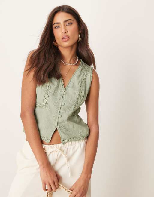 ASOS DESIGN – Salviagrön kostymväst med spetskanter