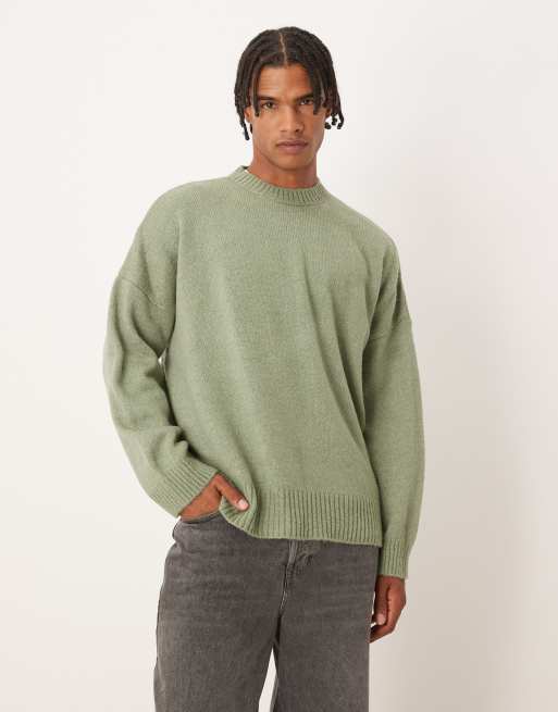 ASOS DESIGN – Salviagrön, melerad, stickad tröja i extra oversize med boxig passform och rund halsringning
