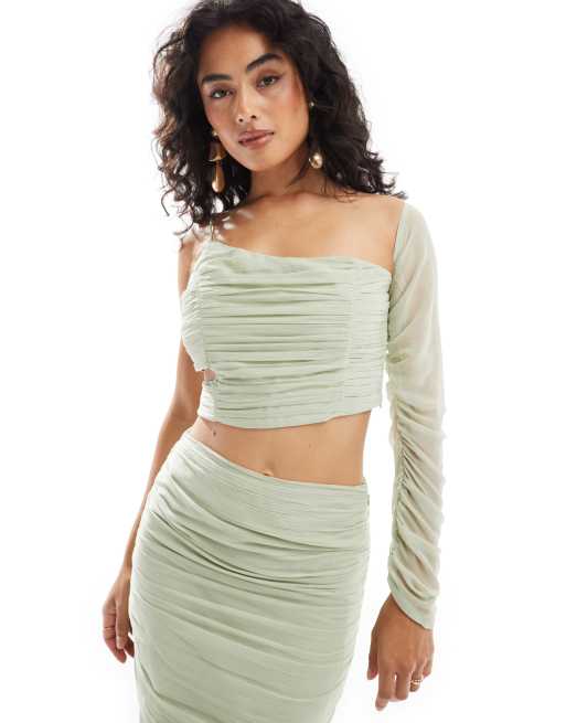 ASOS DESIGN – Salviagrön topp i chiffong med volang, del av set