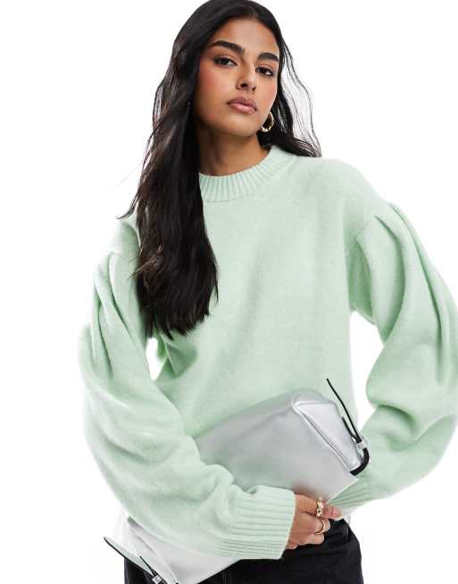 ASOS DESIGN – Salviagrön tröja med volymärmar och rund halsringning
