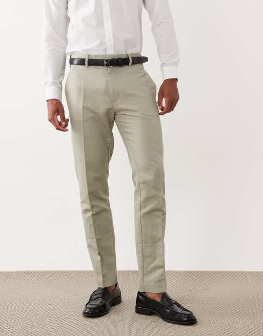 ASOS DESIGN – Salviagröna, smala finbyxor i linnerikt tyg