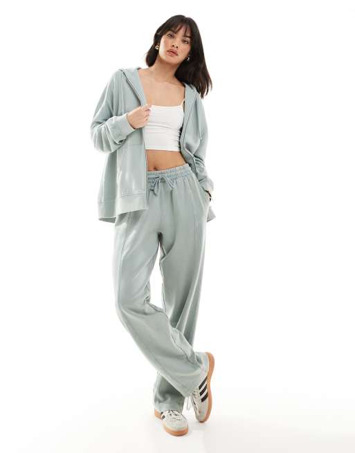 ASOS DESIGN – Salviagröna, tvättade mjukisbyxor med raka ben