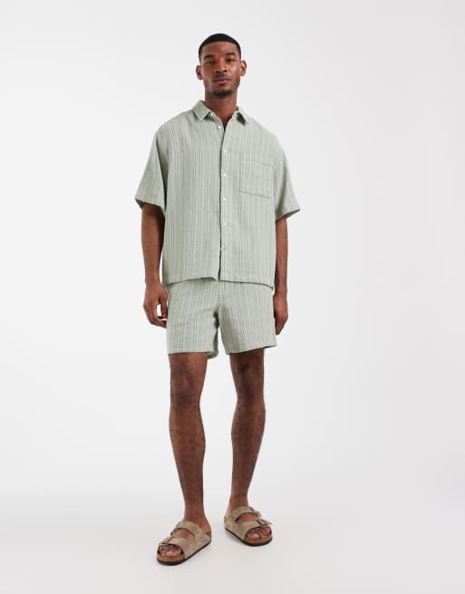ASOS DESIGN – Salviagrönt, randigt och vävt set