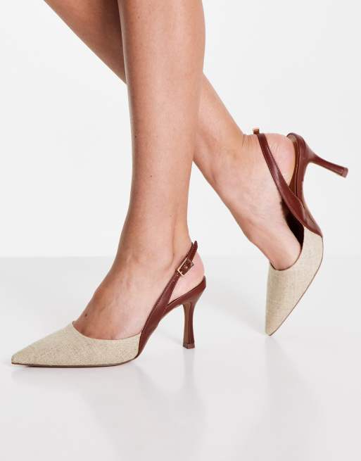 ASOS DESIGN – Samber – Beiga skor med stilettklackar och hälrem