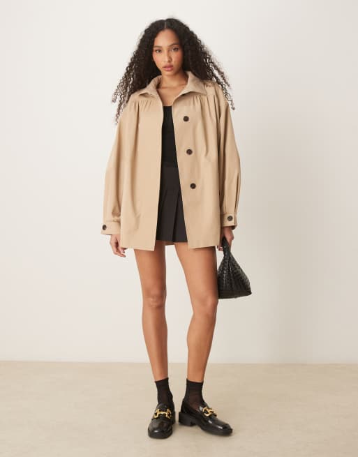 ASOS DESIGN – Sandfärgad, kort trenchcoat med rynkad axel