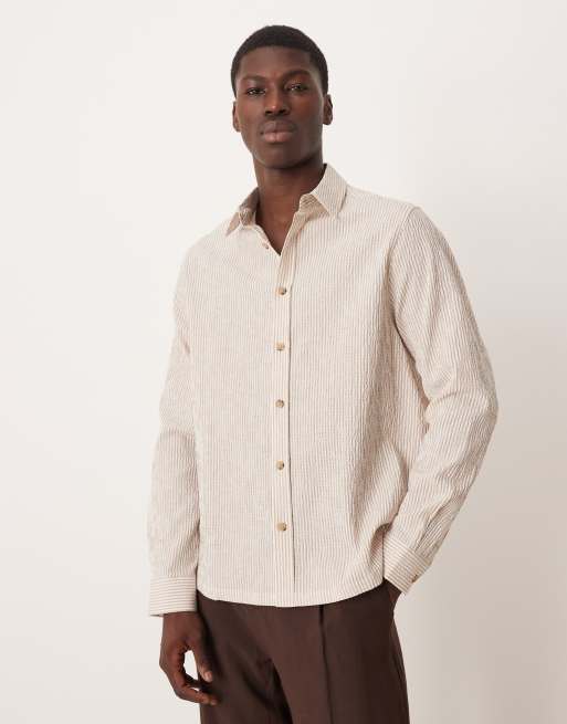 ASOS DESIGN – Sandfärgad, randig skjorta i bäckebölja med avslappnad passform