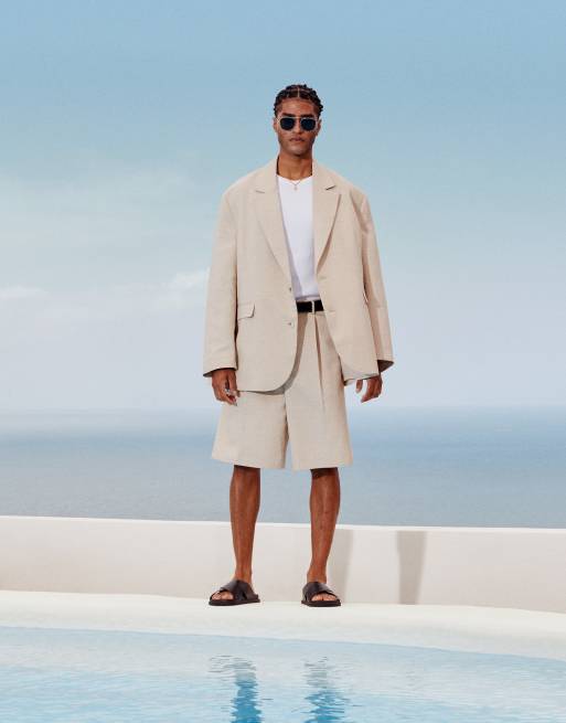 ASOS DESIGN – Sandfärgad strandkostym i oversize och slouchy modell