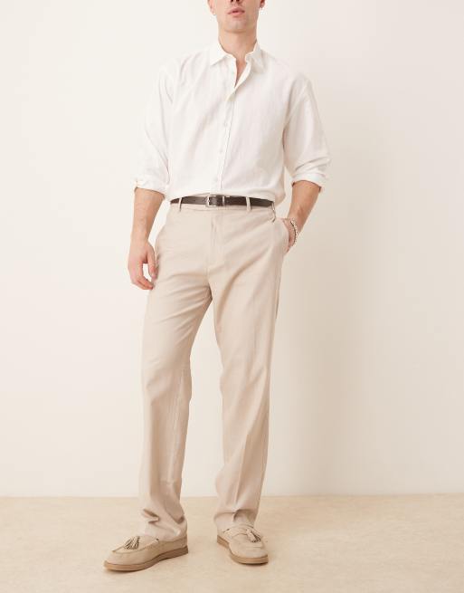 ASOS DESIGN – Sandfärgade finbyxor i linneblandat tyg med raka ben