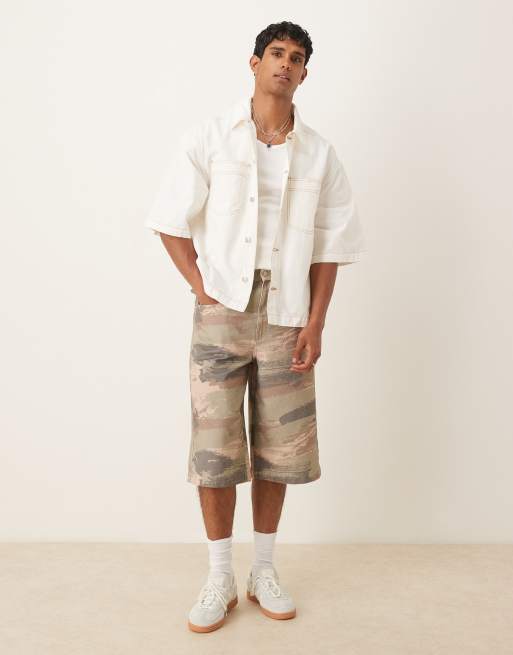 ASOS DESIGN – Sandfärgade, kamouflagemönstrade, långa jeansshorts, del av set
