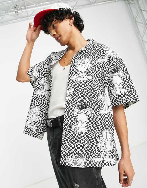 ASOS DESIGN – Schackrutig skjorta i oversize med boxig passform, platt krage och Gustav-tryck
