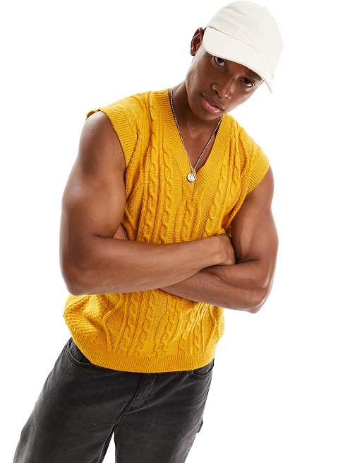 ASOS DESIGN – Senapsgul, grovt flätstickad väst