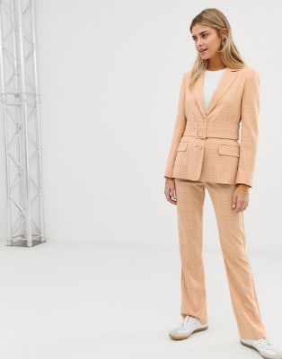ASOS DESIGN – Senapsgul, rutig kostym