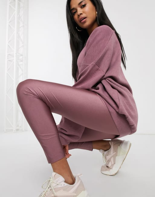 ASOS DESIGN – Set med malvafärgad, supermjuk sweatshirt i oversize-modell och disco-leggings