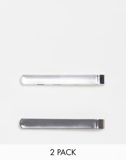 ASOS DESIGN – set med slipsnål i silver och mörkgrå färg, 2-pack