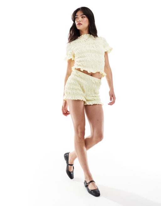 ASOS DESIGN – Set med smockad T-shirt i babydesign och bloomer-shorts