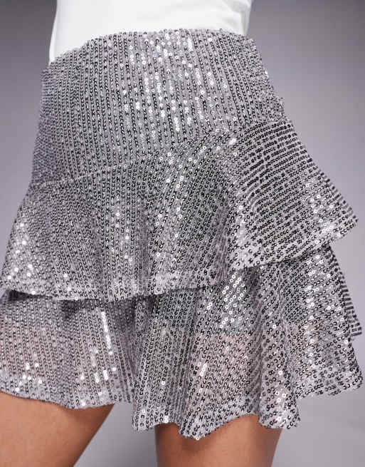 ASOS DESIGN – Silverfärgad minikjol i rarastil med paljetter