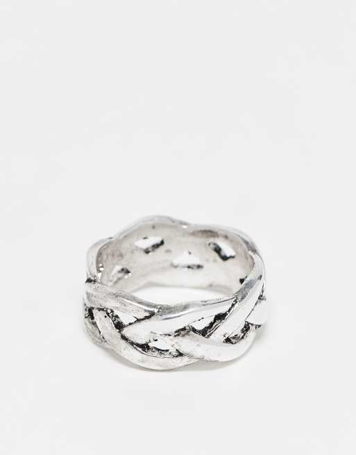 ASOS DESIGN – Silverfärgad ring med flätad repdesign och bränd finish
