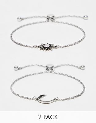 ASOS DESIGN – Silverfärgade armband med mån- och solberlocker, 2-pack