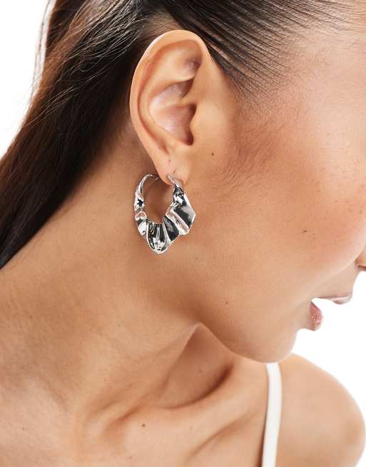 ASOS DESIGN – Silverfärgade creoler med smält, vågig design