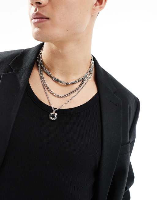 ASOS DESIGN – Silverfärgade, grova halsband med smält design, 3-pack