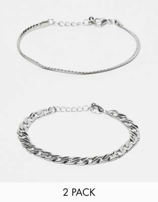 ASOS DESIGN – Silverfärgade kedjearmband, 2-pack