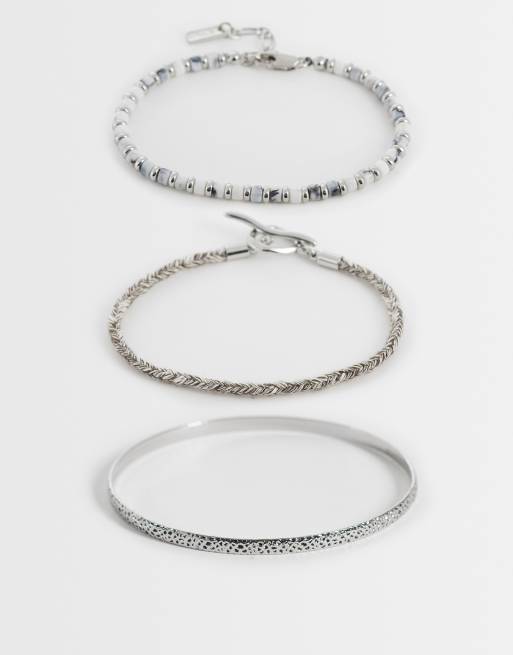 ASOS DESIGN – Silverfärgade manschettarmband och pärlarmband, 3-pack