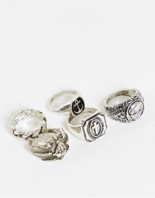 ASOS DESIGN – Silverfärgade, mixade klackringar, 5-pack