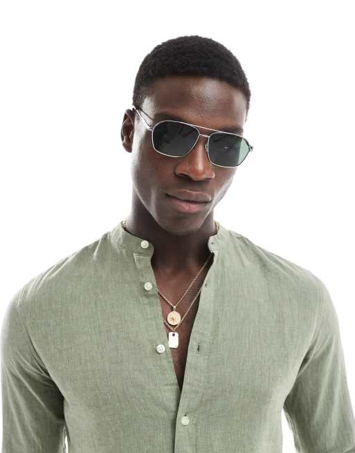 ASOS DESIGN – Silverfärgade pilotsolglasögon med gröna, rökiga glas