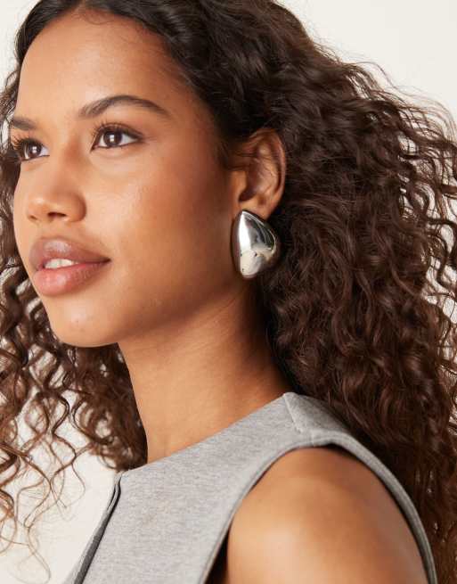 ASOS DESIGN – Silverfärgade, stora stiftörhängen med asymmetrisk, kupolform