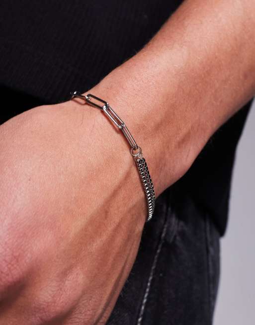 ASOS DESIGN – Silverfärgat armband i vattentåligt, rostfritt stål med blandade kedjor