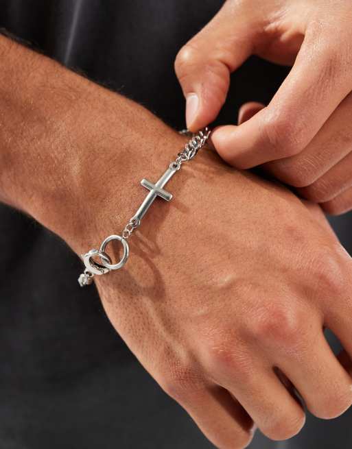 ASOS DESIGN – Silverfärgat armband med kors i vattentåligt, rostfritt stål