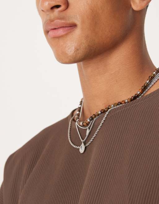 ASOS DESIGN – Silverfärgat armband med pärlor och kedja och smält hänge, 4-pack