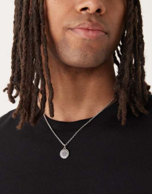 ASOS DESIGN – Silverfärgat halsband i vattentåligt, rostfritt stål med meandermönstrat hänge med svart agatsten