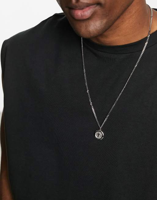 ASOS DESIGN – Silverfärgat halsband i vattentåligt, rostfritt stål med runt korshänge
