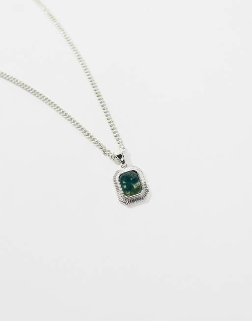 ASOS DESIGN – Silverfärgat halsband med hänge av fyrkantig, mossfärgad agat