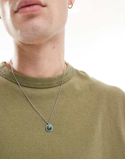 ASOS DESIGN – Silverfärgat halsband med runt stenhänge