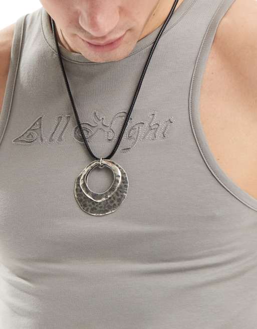 ASOS DESIGN – Silverfärgat halsband med snöre och runt hänge